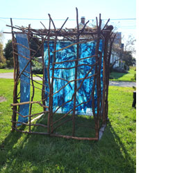 “Dwelling Place” solo outdoor installation September 24 through October 15 2017 at the Jewish Community Alliance (JCA) new building, 1342 Congress Street, Portland. This temporary installation is now in its 7th year. It has been shown and utilized for public interaction at museums and campuses throughout The Greater Portland area.